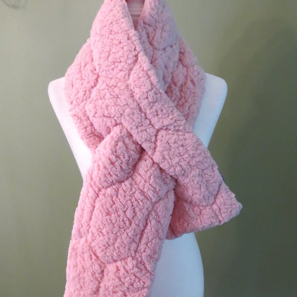 So Cute! Reversible faux sherpa/jacket style pull through scarf. Never worn but tags have been removed. Baby pink