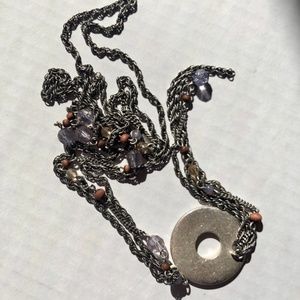 Reversible long and choker length with silver color one side stones, beads and wood