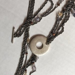 Toggle, burnished metal multi chains with beads