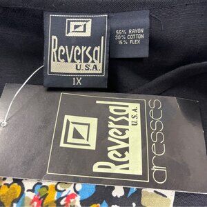 Reversal Black Dress With Abstract Art Print & Contrast Trim Size 1X - New
