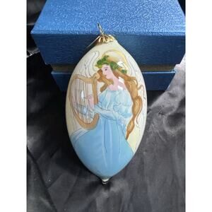 Reverse Hand Paint Christmas Ornament Angel & Harp Pier 1 Li Bien With Original Box . The ornament is in good vintage condition, see photos.