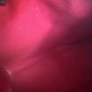 This bag is very gently used with very little wear. The outside of the bag is pristine. There is one light water mark on the inside fabric towards the bottom. This also comes with the original dust cover.