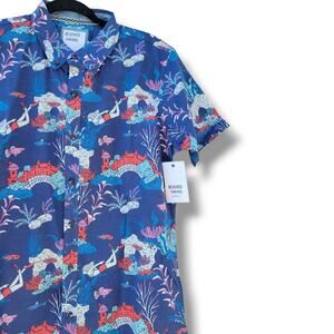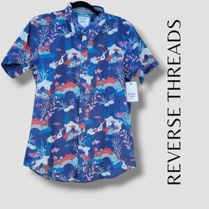 Reverse Threads Men’s Scuba Reef Print Navy Button-Down Shirt Small Cotton New