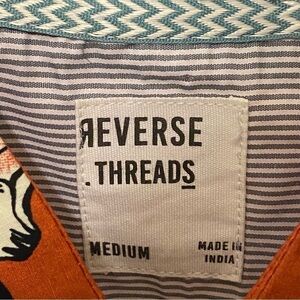 Reverse Threads Mens Short Sleeve Button Down Shirt Size M Longhorn/Copper Print