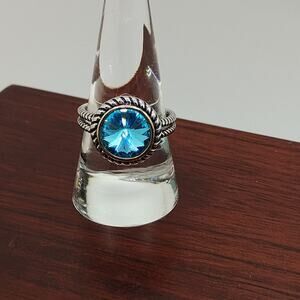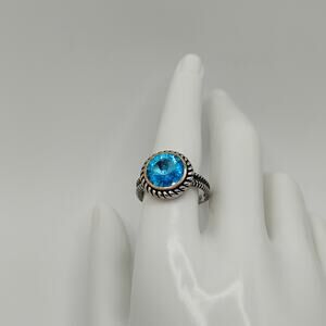 Reverse cut Blue CZ and Sterling Silver Ring Size 9 signed FD 925