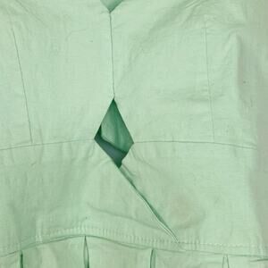 Ready, set, retro. The sly and sexy styling of the Reverse Norma Jean Mint Green Peplum Top will bring all your bombshell dreams to life with a cutout triangle bodice, plus a pleated peplum waist. Wide shoulder straps meet in the center of an open back with a darling bow that Marilyn would adore.