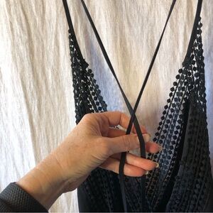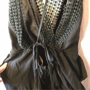 Reverse pants jumpsuit black v neck ball lace detail adjust. Straps side zip M