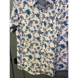 Reverse Threads Shirt Size Medium Blue White Floral Short Sleeve Button Mens
