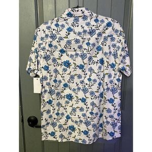 Reverse Threads Shirt Size Medium Blue White Floral Short Sleeve Button Mens.