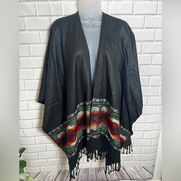 Reversible Acrylic women Poncho made in ECUADOR/black one size