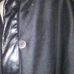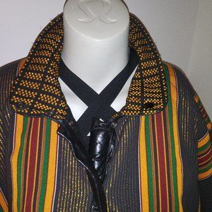 Reversible African Print and Black Coat. ONE SIZE fits like a 2X and still loose fit. Very warm and heavy. One of a kind. Beautiful whichever side is worn with leather trim and deep pockets. Like NEW