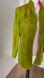 I believe this jacket is from the 1960s. No tag on it. Silk (pretty sure!!) a gorgeous citron green brocade on one side and a coral and pink brocade on the other. Each side has pockets. It’s equipped with beautiful frogs on each colored side for closure. Where the solid green color or the solid coral color or roll up the sleeves to give it contrast. Throw it over jeans or wear it dressy. It’s gorgeous. Perfect condition. 30” from shoulder.
