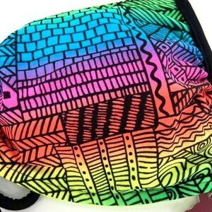 So Reversible Bikini Swimsuit Halter Tie Top Multicolor Rainbow Pattern Black Trim Reverses to Solid Neon Green