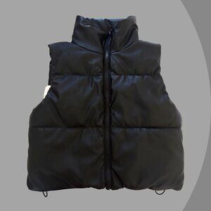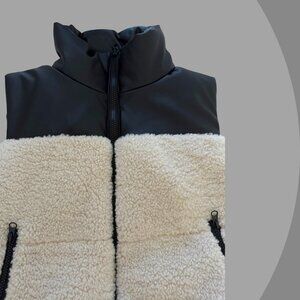 Reversible kids’ vest in black and cream sherpa. Soft, cozy, and versatile for layering over shirts or sweaters. Perfect for fall and winter, casual or outdoor wear.