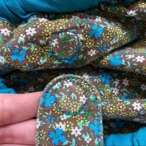 Adorable flower pattern in blue, white, brown, yellow, and green.