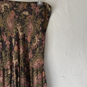 Reversible Boho Skirt Womens XL Brown Green Pink Paisley Asymmetrical Hem