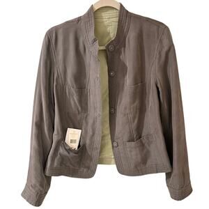 Bomber Jacket 100% Silk Reversible Magnetic Snap, Herbal Green Gray, 10. NWT.