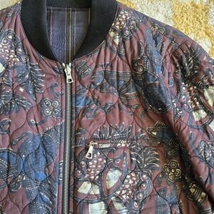 Moderate wear throughout. Minor pilling at cuffs. Moderate unthreading at inner pockets 5/10.