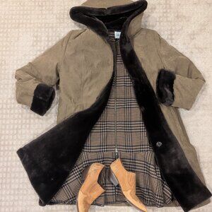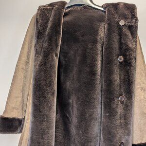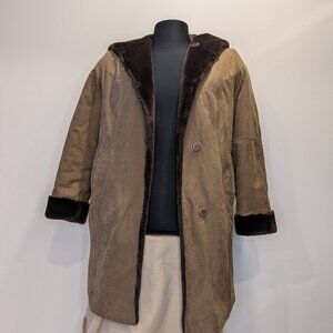 Reversible Brown Fur & Suede Teddy Jacket with Hood - Women M