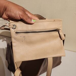 Reversible Brown Tote Bag - Vegan Leather Womens Shoulder Tote with Wristlet