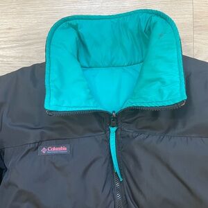 Stylish Columbia jacket for men. Made with 100% nylon. Features a vibrant teal color. Cute vintage puffer jacket. Reversible!! Look at pics for details. Tag says Mens Medium, I’d say fits more small! Very cute vibrant color and great down/duvet puffer for warmth.