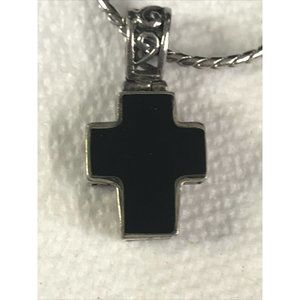 Reversible Cross Pendant Necklace 925 Silver Black Onyx Rope Chain
