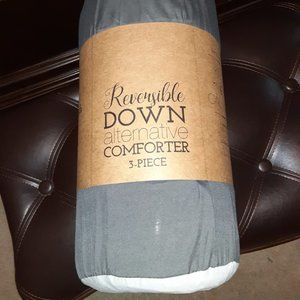Sleep in the ultimate comfort and warmth in this Down Alternative Reversible Comforter, perfect for any season. This microfiber comforter is designed for healthy living and 100% hypoallergenic for allergy sufferers. This luxury comforter presents a quality alternative to Down with incredible loft and end to end baffle-box construction, preventing fiber from shifting, eliminating the need for regular fluffing. Brand new. Still in original packaging. Includes down comforter and 2 pillow shams.