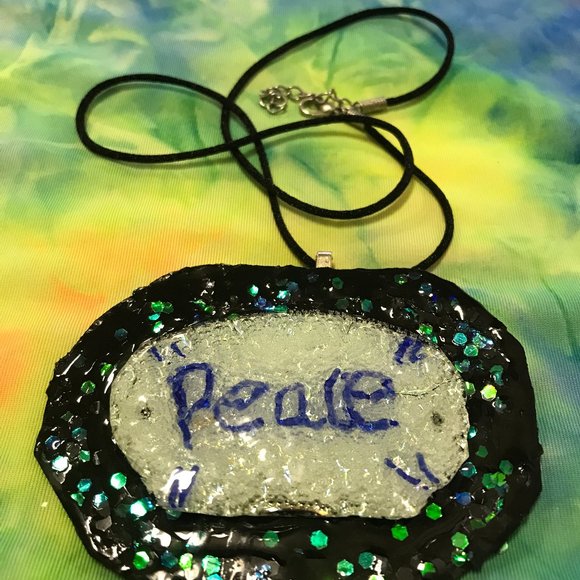 If you want something that is unique, something that no one else has, then this is a nice piece is for you. You can wear it on either side, which makes it two necklaces for the price of one. My sister made this lovely necklace. She makes a variety of other items too. Continue to look through my shop and you will see handmade vases, ugly jugs, paintings, pictures, palenters, and a variety of other handmade unique one of kind items. If you buy more than one at time (bundle) you'll receive a discount. Message and let me know which items you want and I will put them all in one listing for you.