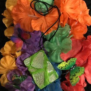 Beautiful unique handmade necklace. If you want something unique, something that no one else has, then this necklace is for you. It’s exclusive in that there are no two that are identical. It’s not made by a machine or mass product, it’s uniquely painted by hand. My sister designed it and she makes many other jewelry pieces & other items. She makes bracelet from toilet paper rolls, plant holders from tea bags, necklaces from cardboard & egg shells, animal decor from bottles & collectible dolls from newspaper. If you want something that is one of a kind, something that is unique, something exclusive, then this piece and many other items are in my shop.