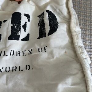 Reversible FEED bag. H- 14 inches. 13 L 5.5 inches wide. Double handle 10 inches. Long handle 16 inches