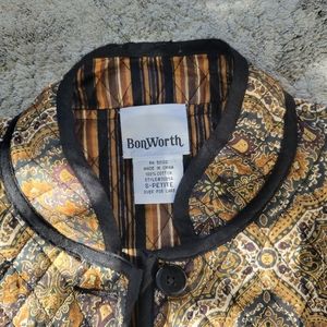This is a reversible quilted shacket perfect for the fall season. One side is a beautiful paisley pattern and the other is orange and black stripes. In almost brand new condition!