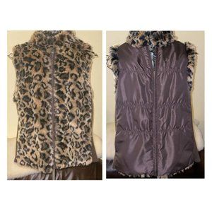 Reversible Faux Fur Animal Print Stretch-side Vest Size XL Brown & Black
