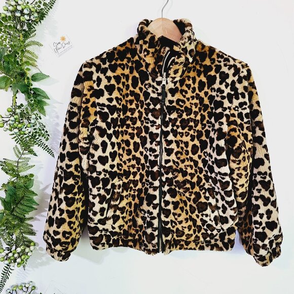 Reversible Faux Fur Leopard Print Jacket With Zip Closure & Pockets Size M《911》J
