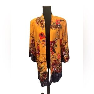 Reversible Floral Kimono Jacket Black & Yellow Baroque Boho Resort Cover Up M/L