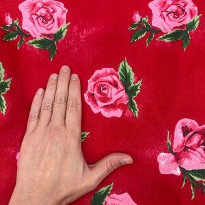 Reversible Floral Striped Table Runner Pink Roses Red Ruffled Flowers 16” by 72”