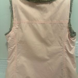 Gorgeous Pink reversible vest with imitation fur-lining on other side. Four pockets, two on sides and two with buttons on front