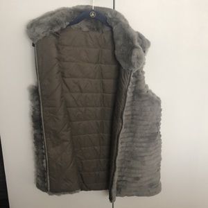 Reversible zipper front sheared rabbit vest in excellent condition. Two side pockets inside & out.