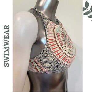Reversible High-Neck Bikini Top – Boho Mandala & Stripe Print – Size Medium
