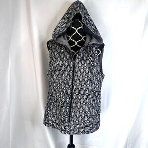 Reversible Hooded Sleeveless Full Zip Vest Jacket Gingham & Bees Handmade Sz LG