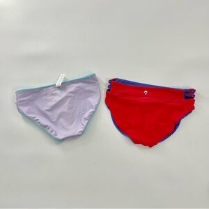 Reversible Ivivva by Lululemon Bikini Bottom Bundle Swimsuit for Girls - BOTTOMS ONLY! Reversible swim bikini bottons. In pink, blue, red, purple. In very good preowned condition. Some very mild pilling on bottom of purple.