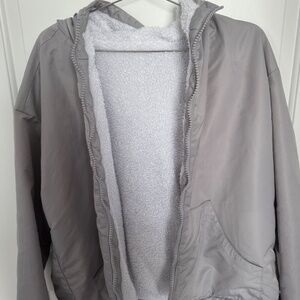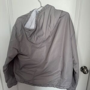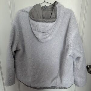 Excellent condition. Reversible jacket, white side is soft and fuzzy. Gray side is more like raincoat material. No idea how much I spent as it's a few years old now. Tag in pocket