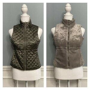 Reversible Jacket Vest Faux Fur Quilted Gray Size Small S