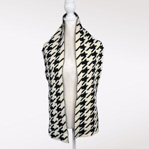 Striking geometric knit scarf, fully reversible with a bold mirrored design. Thick, cozy texture with the feel of a wool blend; no tag present.