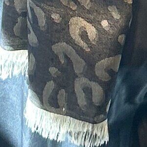 Reversible Leopard animal print silky black/silver scarf-wrap artsy Parisian
