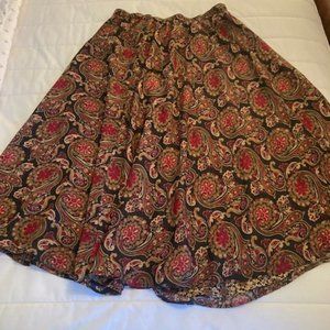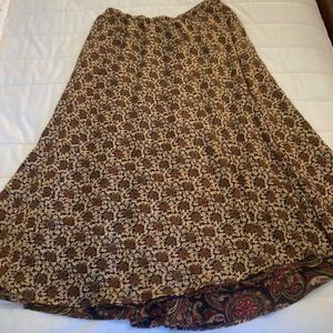 This women's reversible long flower patterned skirt is 34 1/2 inches in length and has a stretchy waist band that is 26 inches. It is multicolor and is reversible. This skirt is in good condition with no rips, tears or stains.
