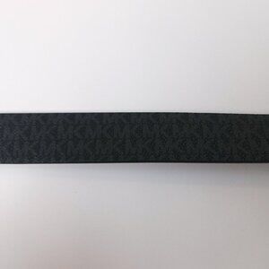 Reversible black and brown belt with silver buckle and MK monogram logo print. Buckle easily flips for two-in-one wear.