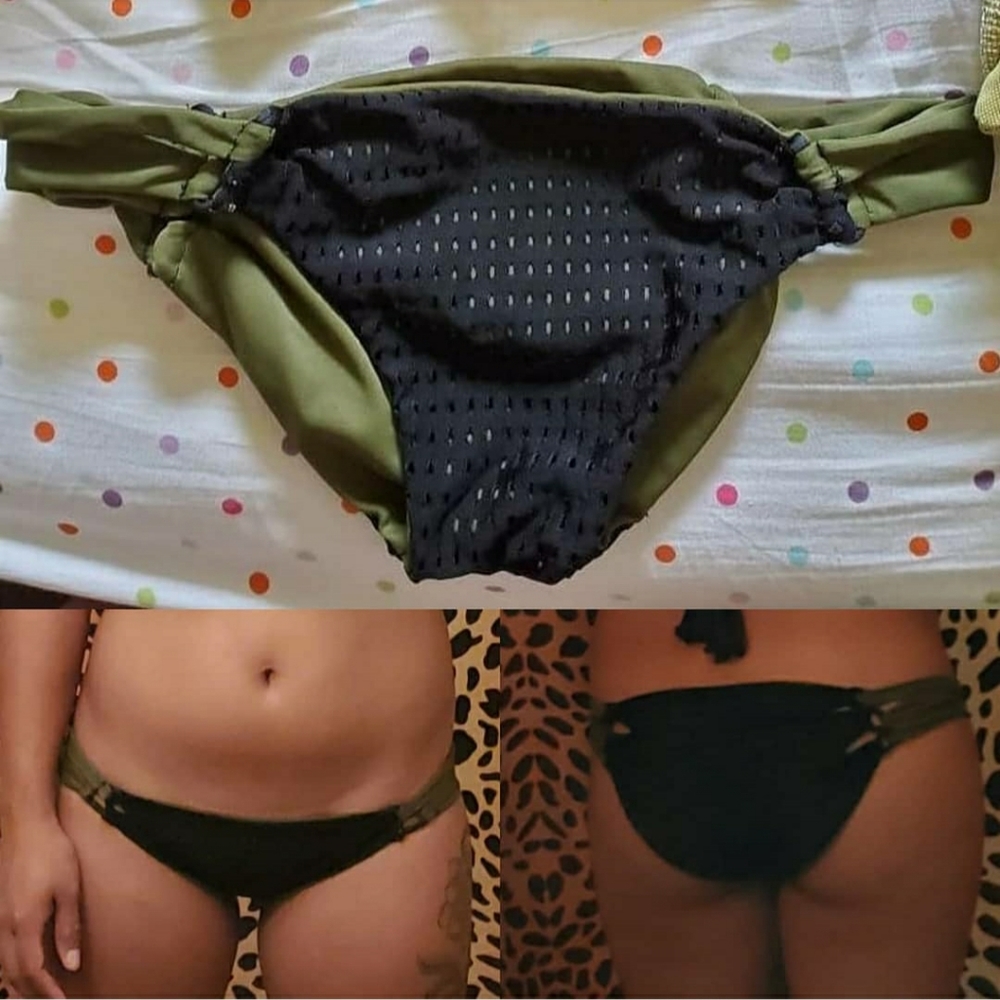 Black mesh & Olive green reversible bottom. Little cheeky. Like Acacia crochet papio style