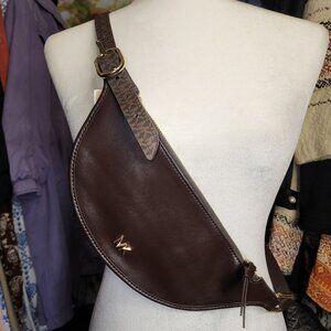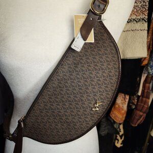 Reversible Michael Kors Monogrammed Crescent Crossbody Shoulder Belt Bag - Adjus
