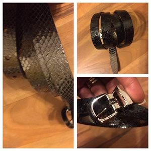 Michael Kors black Women's Belt. Reversible Silver hardware. For Length and width of belt, see photos attached. Length is 44" long. Pre-Owned with minor imperfection-last hole used as shown in photo slot number 8 but Belt in excellent condition. No hold and No trades.