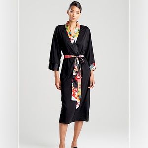 flowy yet slimming reversible robe, printed satin on one side and our Congo jersey knit fabric on the inside with printed satin cuffs and collar